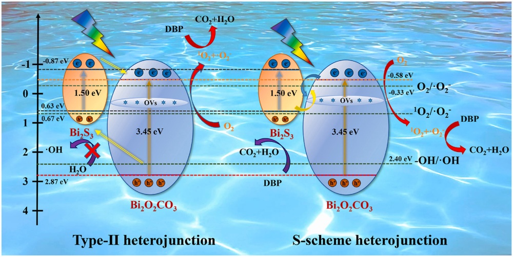 图1. Bi2O2CO3/Bi2S3光催化剂降解DBP机理示意图