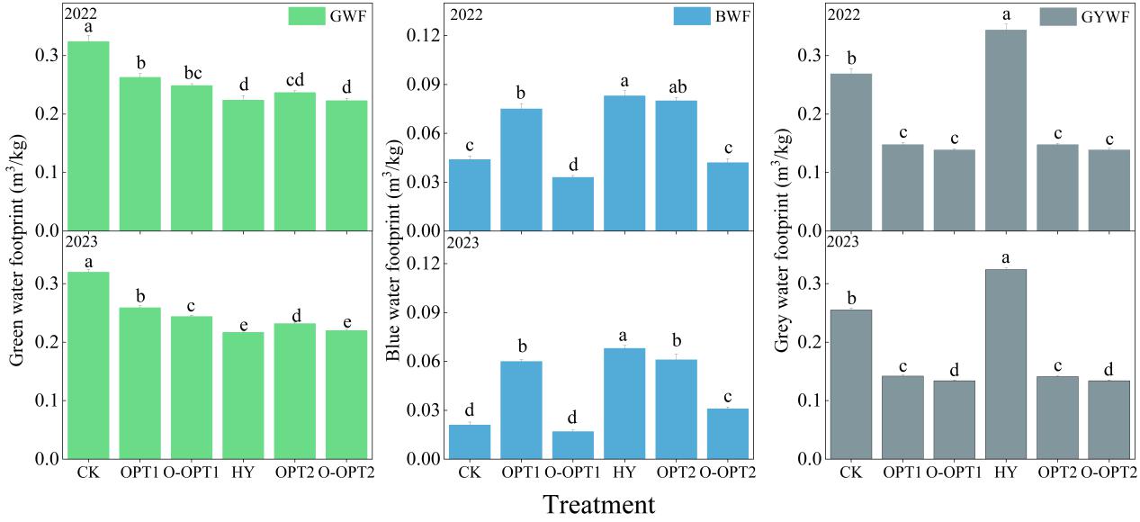 图2.2022年和2023年综合土壤-作物系统管理试验的水足迹